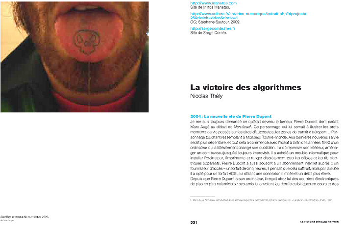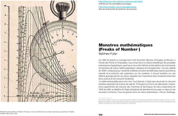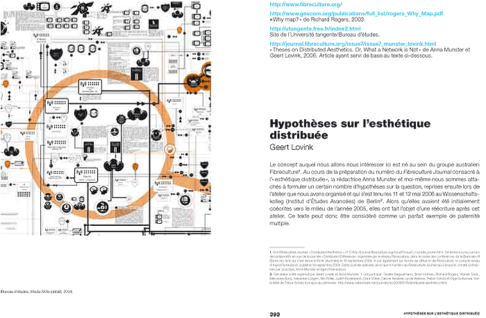 Contributors : Inke Arns, Samuel Bianchini, Andreas Broeckmann, Christophe Bruno, Wendy Chun, Geoff Cox, Florian Cramer, Anne-Marie Duguet, Jean-Paul Fourmentraux, Darko Fritz, Matthew Fuller, Alexander Galloway, Olga Goriunova, Graham Harwood, Wilfried Hou Je Bek, Anne Laforet, David-Olivier Lartigaud, Geert Lovink, Nathalie Magnan, Alex McLean, Karen O’Rourke, Miller Puckette, Gilles Rouffineau, Antoine Schmitt, Nicolas Thély, Sylvie Tissot, Jo Walsh, Adrian Ward.