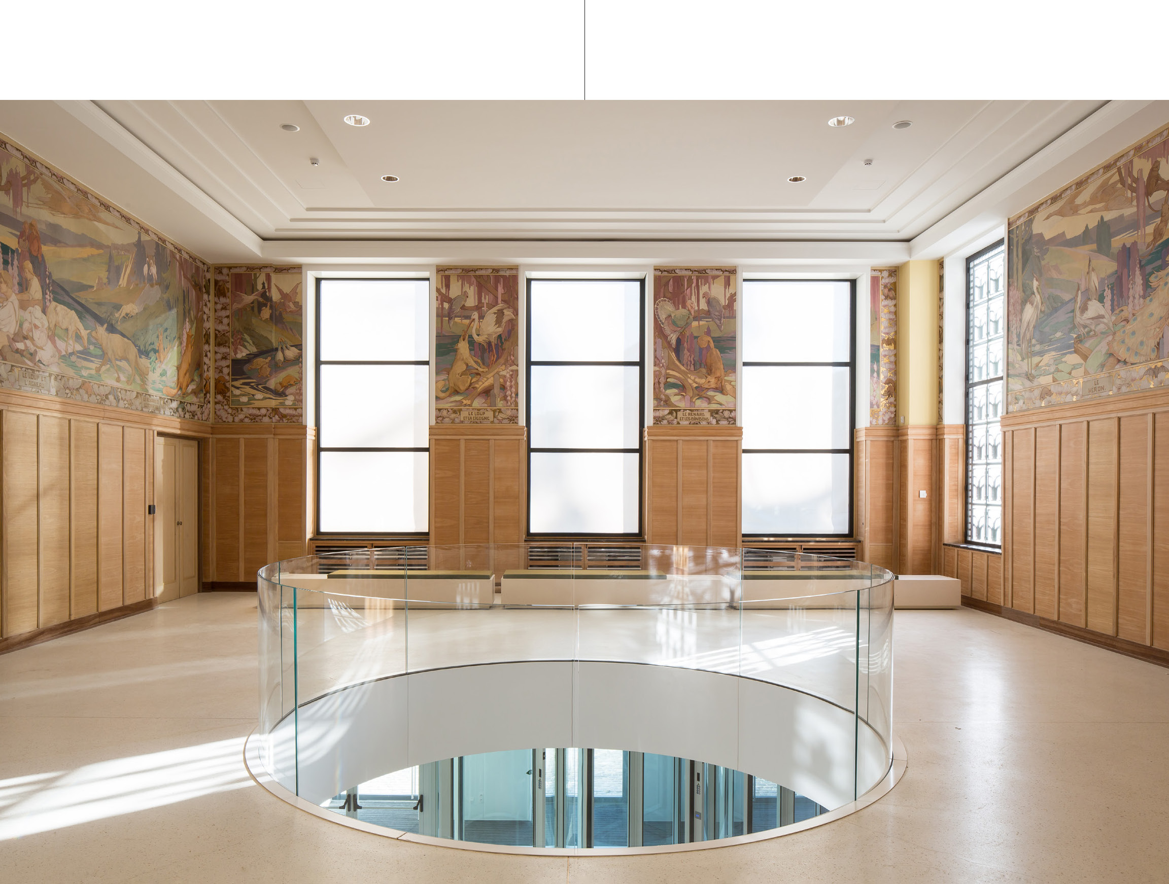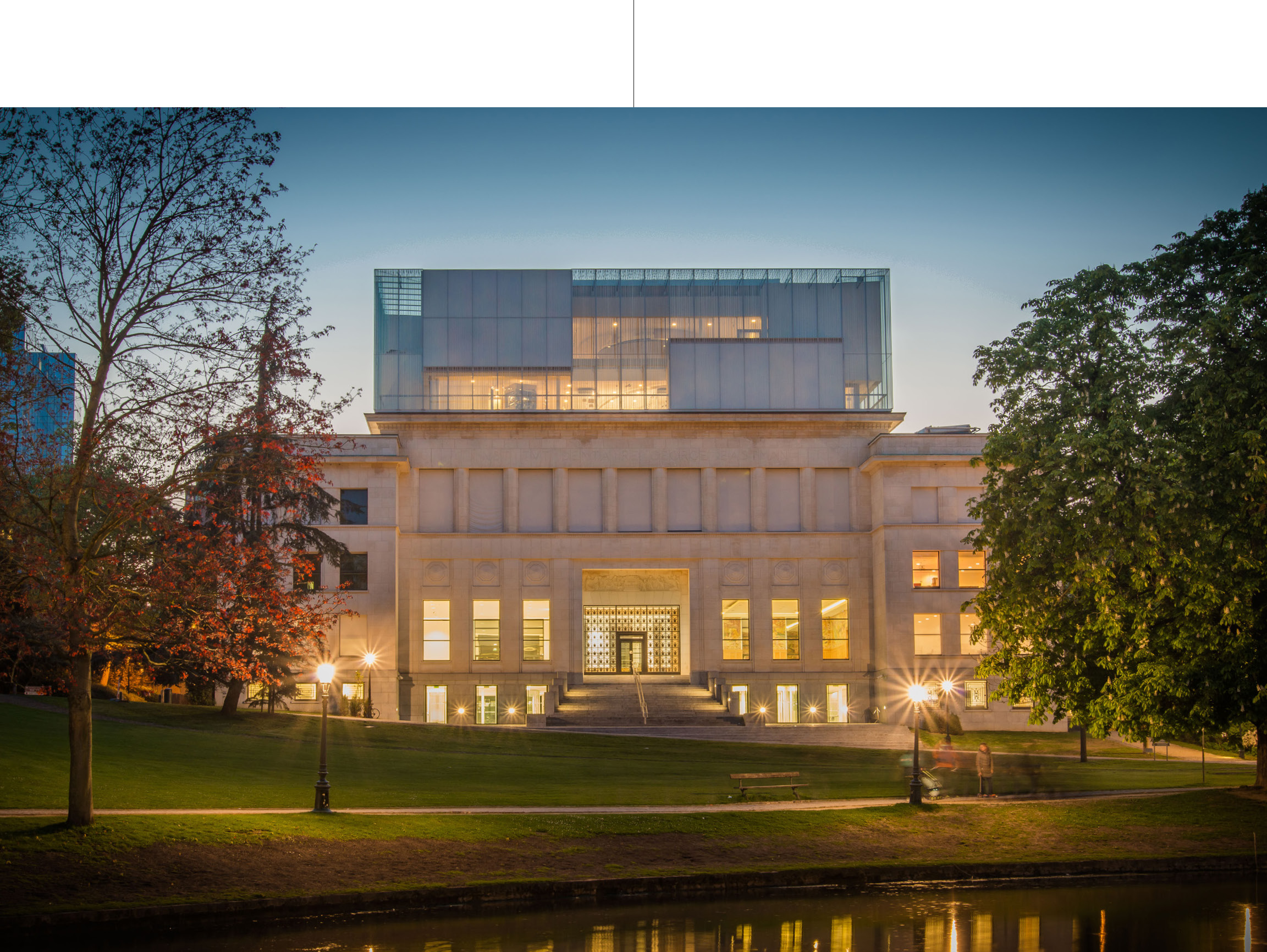 How can we make the history of a continent and that of an idea spatially sensitive? The mission, entrusted to Chaix & Morel et Associés and JSWD Architekten, was coupled with a second challenge: to make the transplant of this "place where the European idea comes to life" take place by transforming the Art Deco building into a new cultural building. Designed as "a showcase for Europe", the all-glass volume, up to its original structure designed with the engineer and architect Werner Sobek, reveals behind its silkscreened façade the random floating of opaque prisms that the fluidity of the interior path allows to travel freely.
