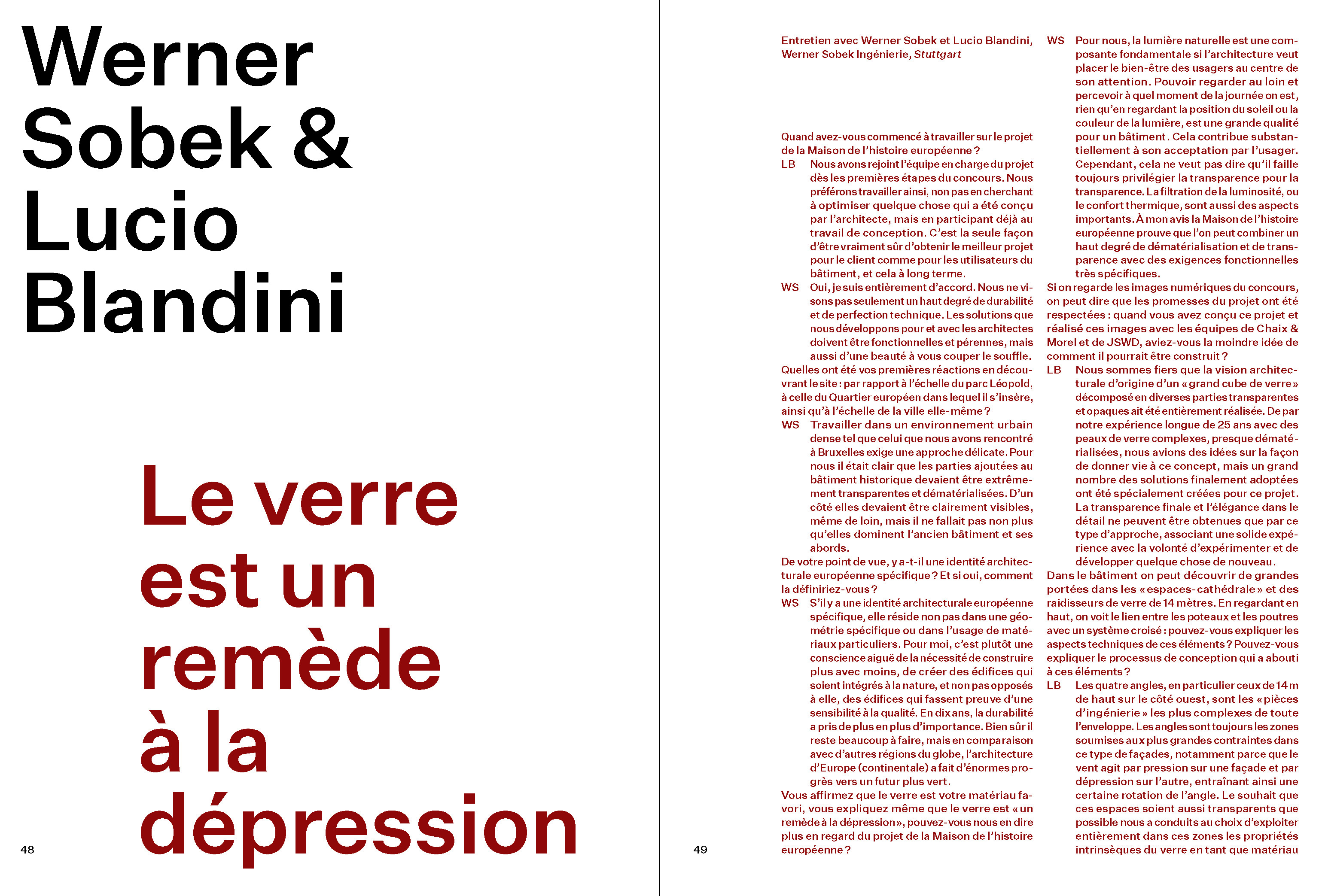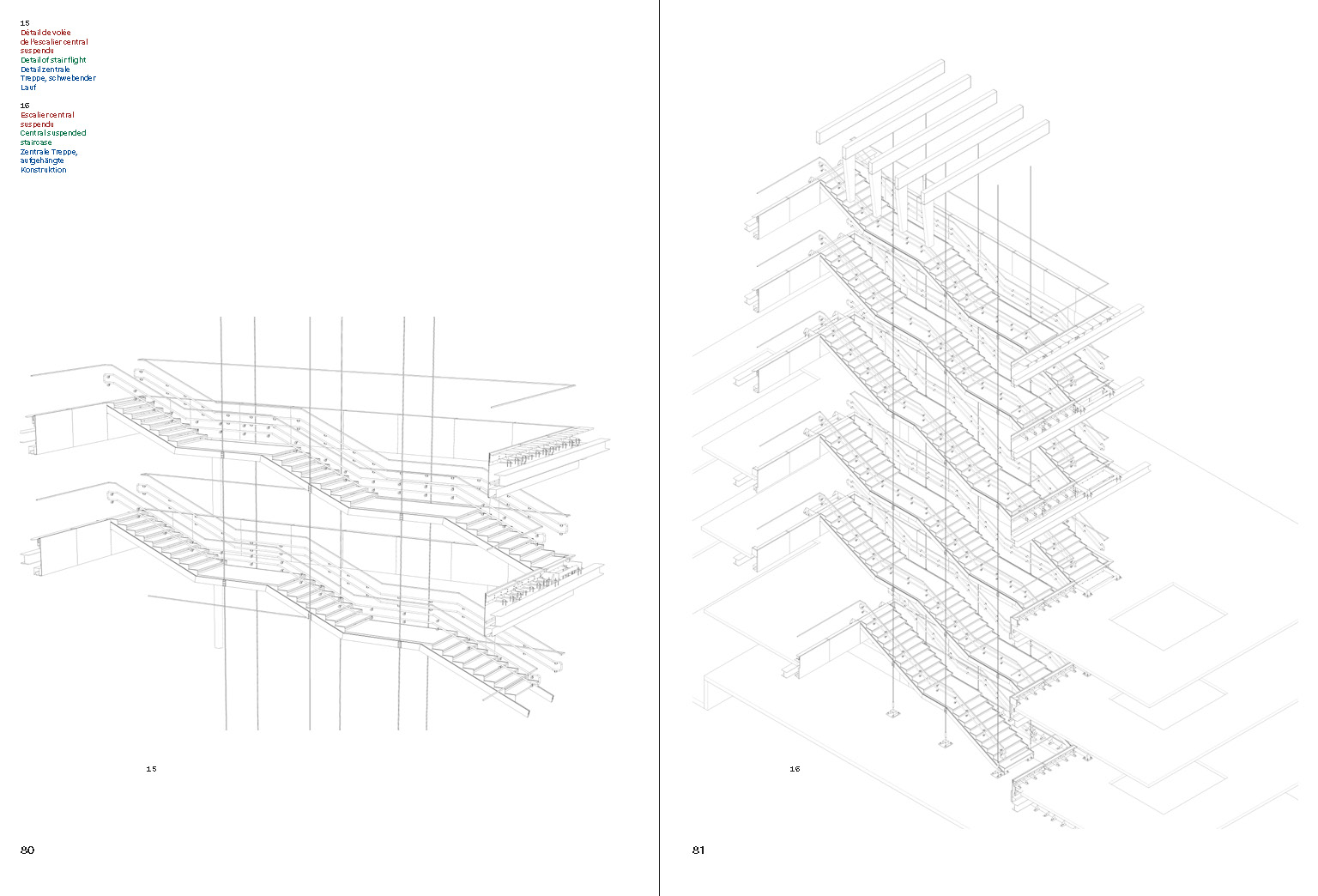 For this trilingual book, graphic designers Baldinger and Vu-Huu have transposed the building concept into two volumes in different formats under Swiss binding. In Book I, Sophie Trelcat traces the general history of the project and its context and then enters into discussions with the project architects - Walter Grasmug (Chaix and Morel and Associates) and Konstantin Jaspert (JSWD Architekten) - and the engineers Werner Sobek and Lucio Blandini. Mainly illustrated, Book II shows the different phases of the building's construction - including the suspended staircase and the original glass façade - until its delivery.
