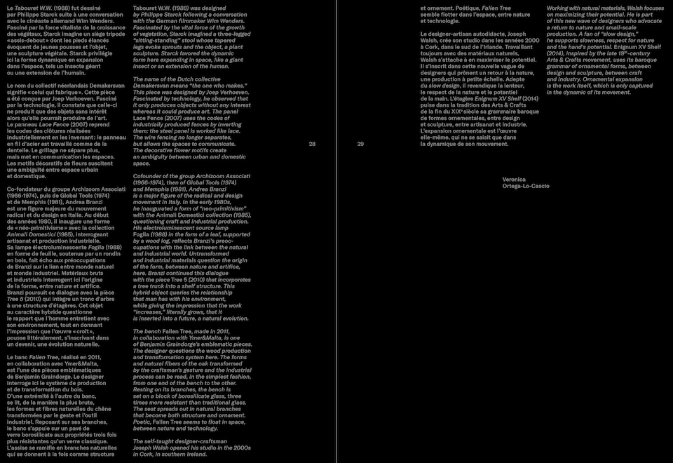 Artistes-designers : Laure Albin Guillot, Alisa Andrasek, François Azambourg, Aurel Bauh, Mathias Bengtsson, Francis Bitonti, Tord Bontje, Ronan et Erwan Bouroullec, Aldo Bakker, Gijs Bakker, Andrea Branzi, François Brument, Louise Campbell, Fernando & Humberto Campana, Wendell Castel, Philippe Stark, Demarkesvan, André Dubreuil, Ammar Eloueini, EZCT ARCHITECTURE & DESIGN RESEARCH, Vincent Fournier, Benjamin Graindorge, Konstantin Grcic et David Trubridge, Frank Gehry, Michael Hansmeyer et Benjamin Dillenburger, Olivier van Herpt, Junya Ishigami, Pierre Jahan, Hella Jongerius, Patrick Jouin, Andrew Kudless, Shiro Kuramata, Joris Laarman, Matthieu Lehanneur, Ross Lovegrove, Nendo, Neri Oxman, Casey Reas, Albert Renger-Patzsch, Aleksandrina Rizova, Il Hoon Roh, Jenny Sabin, Franke Tepjkema, Thonet Frères, Marcel Wanders, Joseph Walsh, Eugen Wiskovsky.
