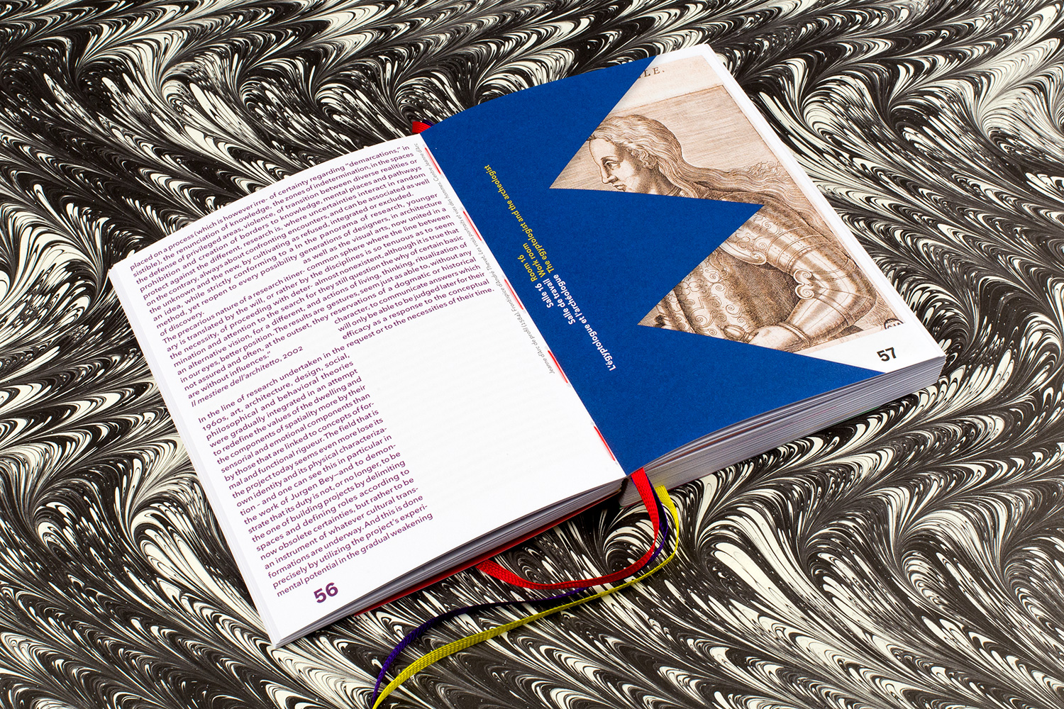 Ni catalogue ni inventaire, l'ouvrage bilingue - entre le livre de poche et le missel - est tout d'abord un livre d'art réalisé par les graphistes EricandMarie. Il propose une visite virtuelle du nouveau lieu et restitue le concept de l'agence de design développé à partir de personnages et d'œuvres en lien avec Orléans. Dexter & Sinister est aussi une publication participative qui associe une multitude de contributeurs (acteurs du projet) ayant accompagné, à différents niveaux, le travail des designers. Ainsi des textes de personnes connectées avec Orléans et le projet (historien, chercheur, conservateurs, artiste, responsables publics, critique d'art, designer, photographe, étudiants de l'ESAD) accompagnent une iconographie très riche issue principalement du Musée des beaux-arts, du Frac Centre, du Centre Jeanne d'Arc, du studio Makkink & Bey et du photographe de patrimoine François Lauginie. Le titre Dexter & Sinister est aussi une référence à l'art du blason qui a constitué un des fils directeur de la recherche du studio Makkink & Bey. Voir extrait