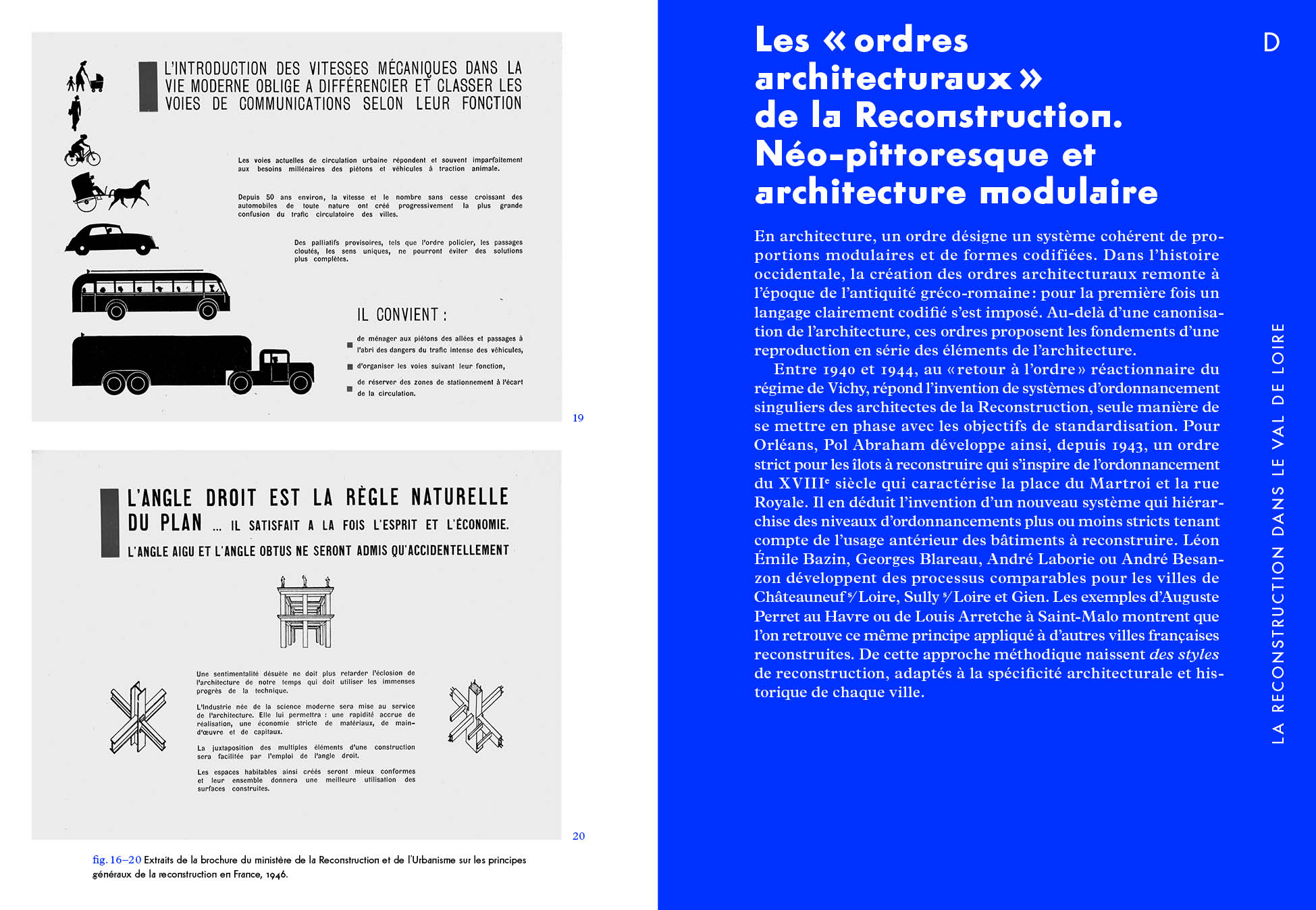 3 Un préfet technocrate « Reconstruction nationale » dans le Loiret : Jacques Morane — Pierre Allorant // 6 Une histoire à redécouvrir — Elke Mittmann // 7 1940—1944 : bilan des destructions en France et dans le Loiret // 13 Le temps du provisoire : un fonctionnalisme d’urgence // 19 La continuité des doctrines. De Vichy à la IVe République // 27 Les « ordres architecturaux » de la Reconstruction. Néo-pittoresque et architecture modulaire // 57 Projeter la ville de demain // 71 La fin d’un récit // 76 L’actualité de l’architecture de la Reconstruction — un patrimoine vivant, un attachement à (re)construire collectivement.