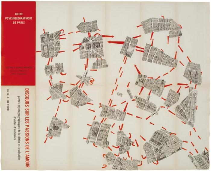 Crédits photo du haut : Guy Debord, Guide psychogéographique de Paris. Discours sur les passions de l'amour - 1957 - FRAC Centre